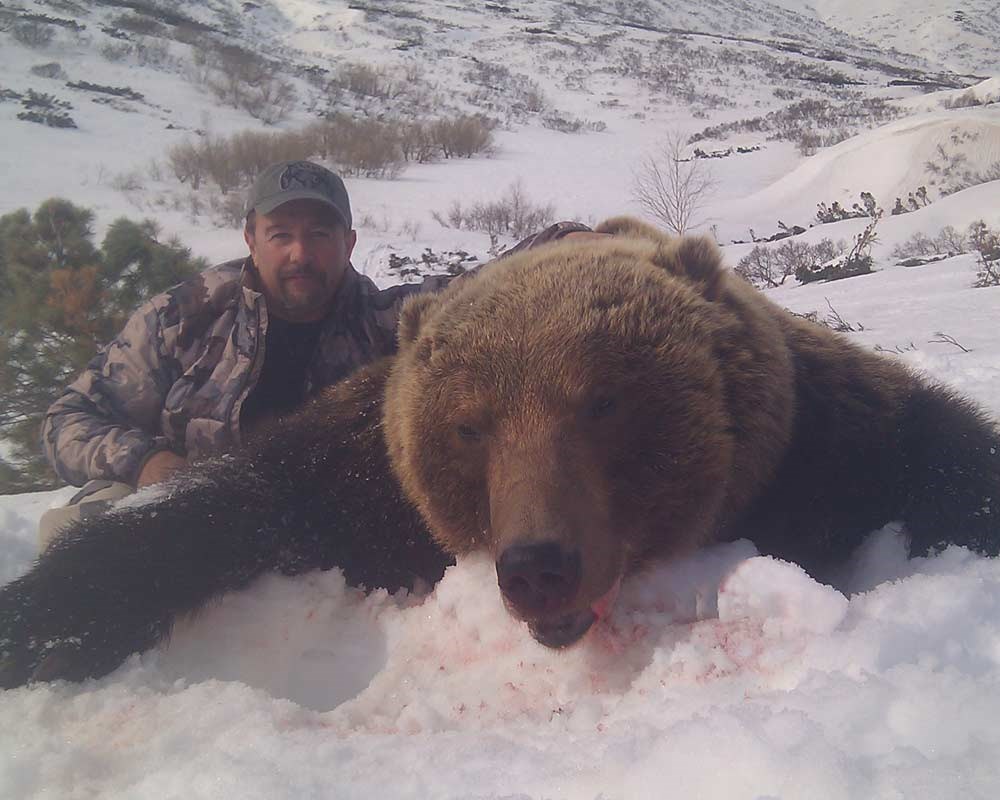 Searching for tracks and glassing mountain hillsides searching for bears is the technique used to hunt the Bears. This hunt is very suitable for the seasoned hunter who is not necessarily in top physical shape, as most of the hunting is done on snowmobile and sled. Walking is also done of course. The better shape you are in the more walking you will do and this will of course increase your chances of success. Spot and Stalk methods are also used.